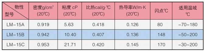 LM-15系列冰河冷媒由聚硅氧烷改性而成。外观为无色或浅色液体,不溶于水。具有生理惰性、良好的化学稳定性、凝固点低、使用寿命长等特点,对以金属为代表的众多材料,几乎不会产生不良的影响,可应用于医药、化工、新能源等领域的制冷系统。